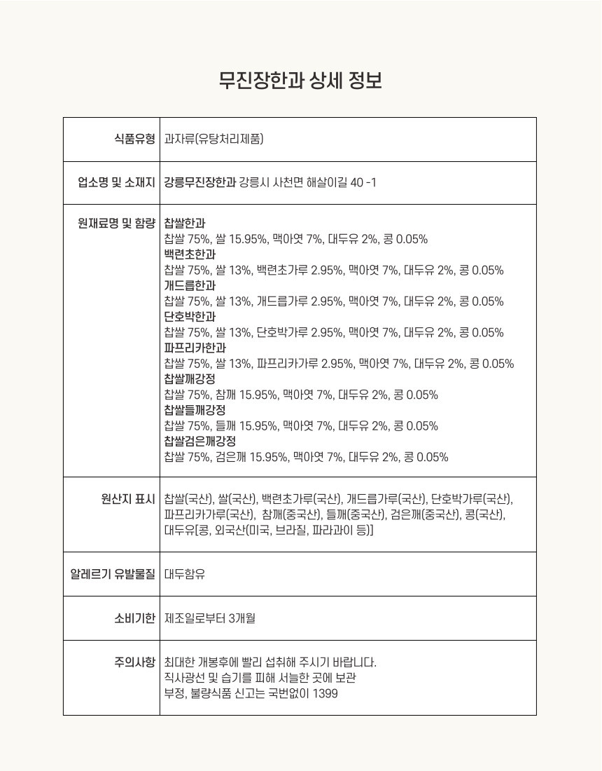 강릉무진장한과 찹쌀반반(소) 개별포장 |